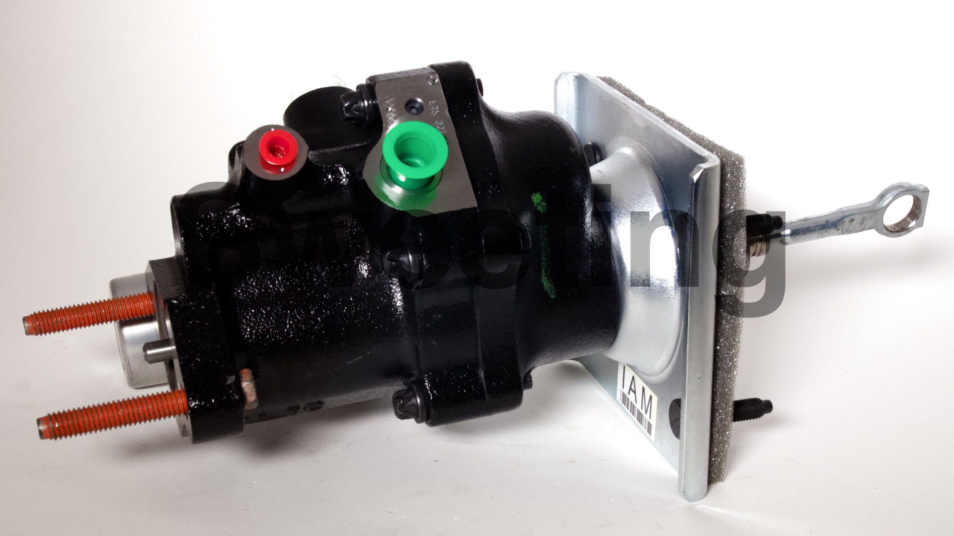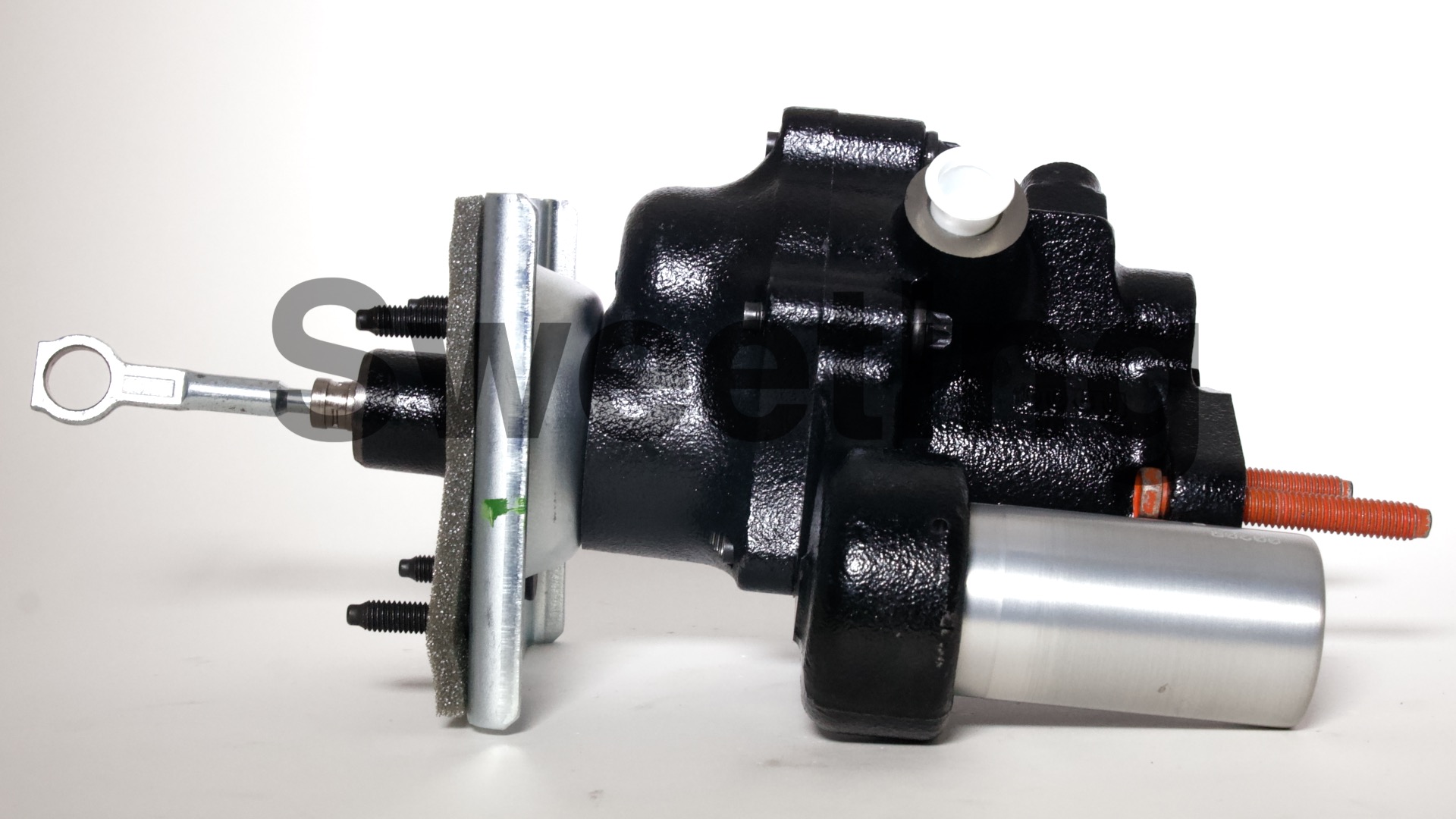 The Hydro-Boost is smaller in diameter than vacuum boosters, being about the dimensions of an iron master cylinder, it mates to the firewall/brake pedal and the master cylinder the same way a vacuum booster does, and it fits anywhere a vacuum booster will, as well as many place a vacuum booster won't. The aluminum canister on the side is the accumulator, which stores pressure in case your engine dies to provide you with some braking and steering assist to help you come to a safe stop.