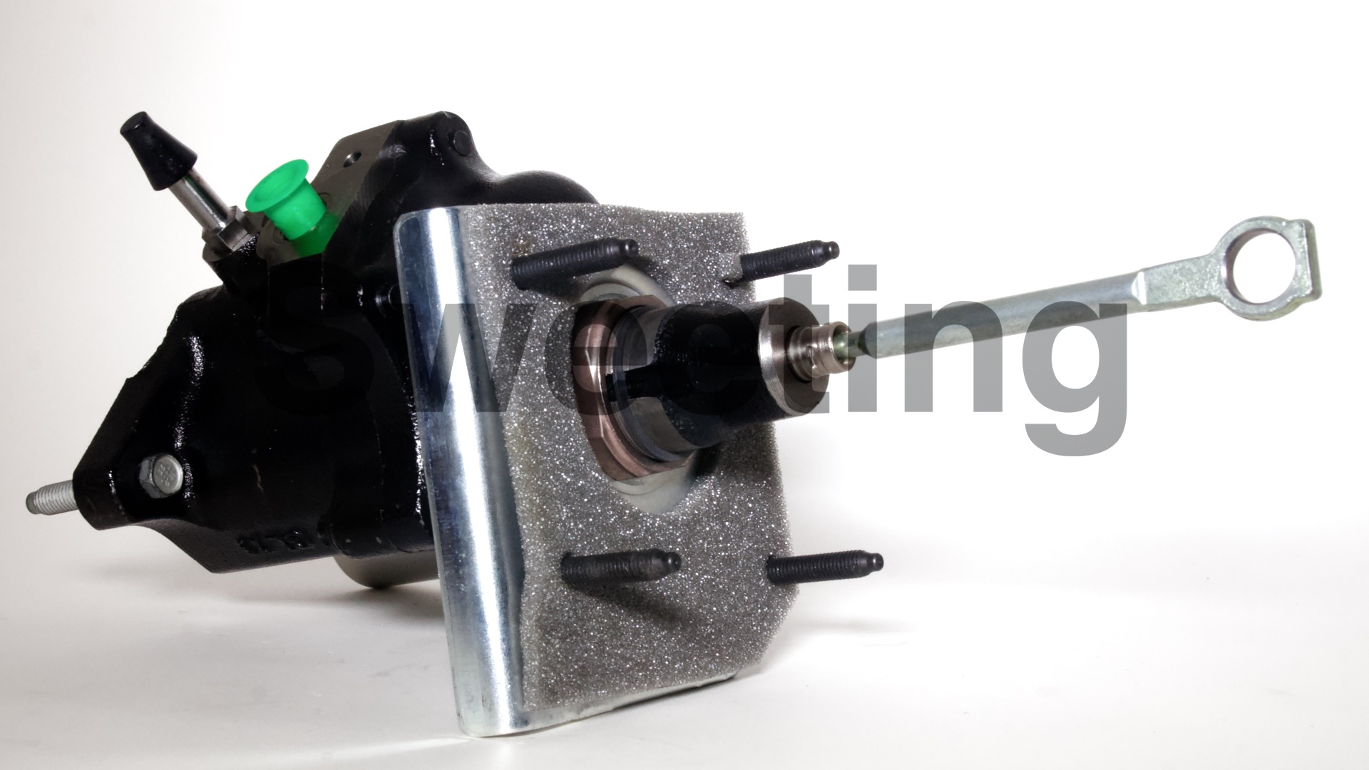 The Hydro-Boost is smaller in diameter than vacuum boosters, being about the dimensions of an iron master cylinder, it mates to the firewall/brake pedal and the master cylinder the same way a vacuum booster does, and it fits anywhere a vacuum booster will, as well as many place a vacuum booster won't. The aluminum canister on the side is the accumulator, which stores pressure in case your engine dies to provide you with some braking and steering assist to help you come to a safe stop.