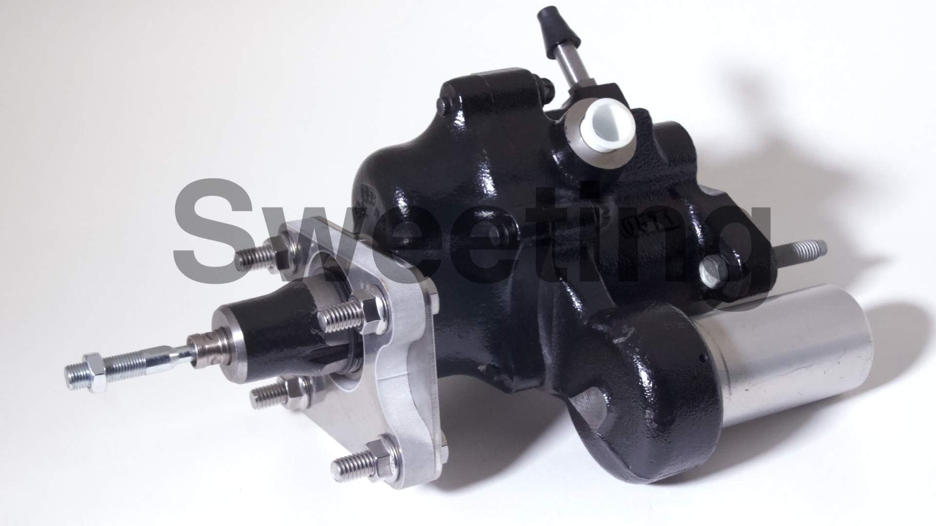 The Hydro-Boost comes standard with a durable black paint that will look good and last. We offer powder coat options, which will smooth out the bumps of the casting and look great. Units have to be disassembled for powder coat, and there is a lot of work that goes into preparing units for chrome, so there will be a longer lead time on chrome, powder coat, or other custom work.