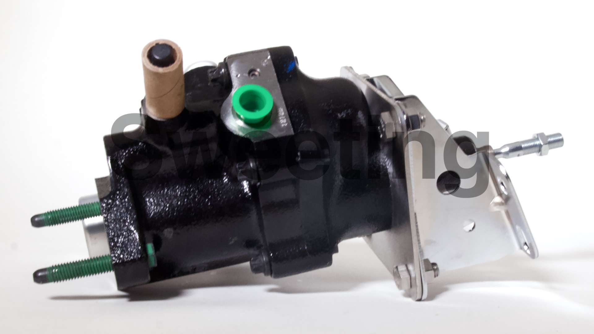 The Hydro-Boost is smaller in diameter than vacuum boosters, being about the dimensions of an iron master cylinder, it mates to the firewall/brake pedal and the master cylinder the same way a vacuum booster does, and it fits anywhere a vacuum booster will, as well as many place a vacuum booster won't. The aluminum canister on the side is the accumulator, which stores pressure in case your engine dies to provide you with some braking and steering assist to help you come to a safe stop.