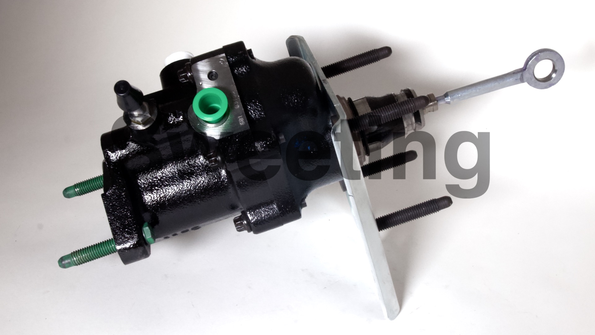 The Hydro-Boost® is smaller in diameter than vacuum boosters, being about the dimensions of an iron master cylinder, it mates to the firewall/brake pedal and the master cylinder the same way a vacuum booster does, and it fits anywhere a vacuum booster will, as well as many place a vacuum booster won't. The aluminum canister on the side is the accumulator, which stores pressure in case your engine dies to provide you with some braking and steering assist to help you come to a safe stop.